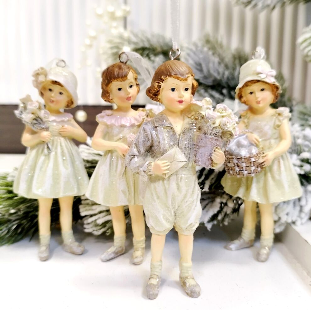 "Дети с цветами"4шт крем ёлочные игрушки