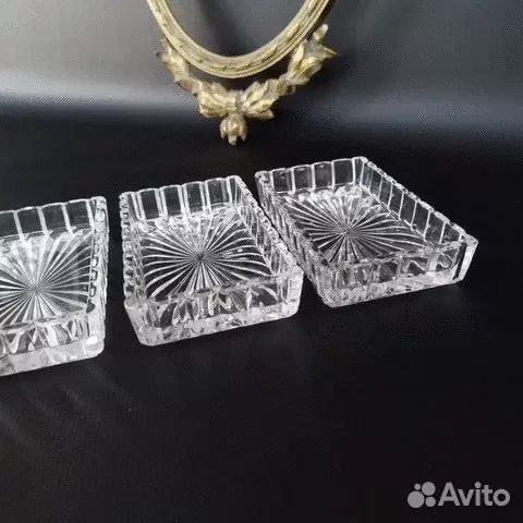 Хрустальные лотки 3шт на подносе Франция