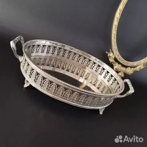 ------------------------------------------Поднос овальный на ножках с ручками и бортиком винтаж Италия